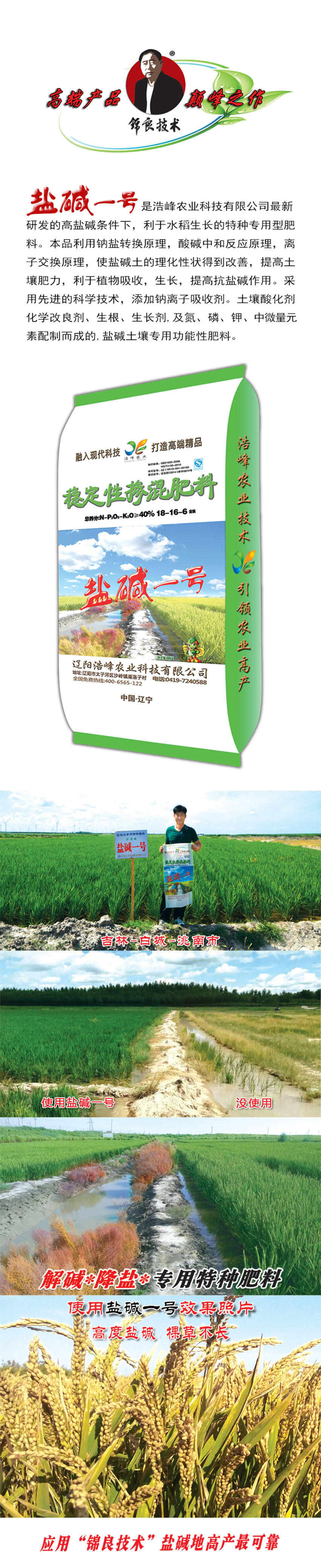 鹽堿一號是浩峰農(nóng)業(yè)科技有限公司最新研發(fā)的高鹽堿條件下,利于水稻生長的特種專用型肥料。本品利用鈉鹽轉(zhuǎn)換原理,酸堿中和反應(yīng)原理,離子交換原理,使鹽堿土的理化性狀得到改善,提高土壤肥力,利于植物吸收,生長,提高抗鹽堿作用。采用先進(jìn)的科學(xué)技術(shù),添加鈉離子吸?。土壤藥F粱Ц牧技痢⑸?、生长?,及氮、磷、鉀、中微量元素配制而成的,鹽堿土壤專用功能性肥料。